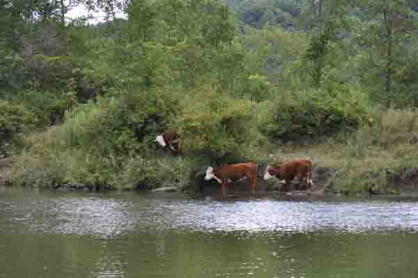The Crown Point Ferry. Just beyond the ferry, at the base of those