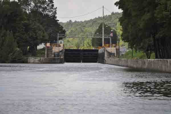 Approaching a canal lock.