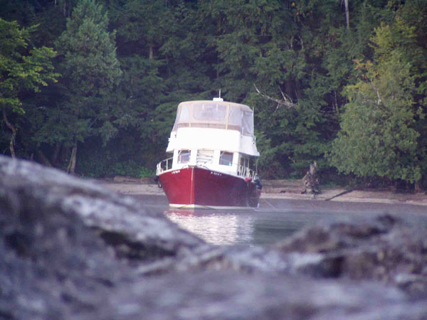 The Trawler anchored at the other end of the harbor