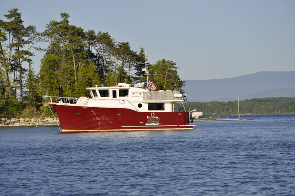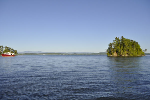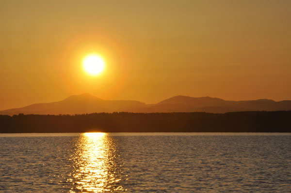 After a snack, I pulled up anchor and motored out on a beautiful calm lake. The sun came up over the Green mountains of Vermont as I left the bay and headed home.