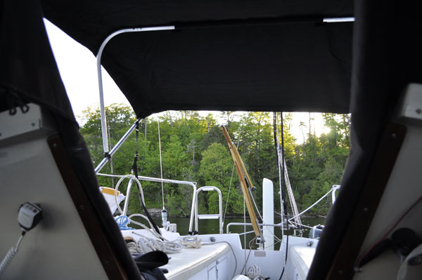 After I dropped anchor I put up my pop top, cover and bimini