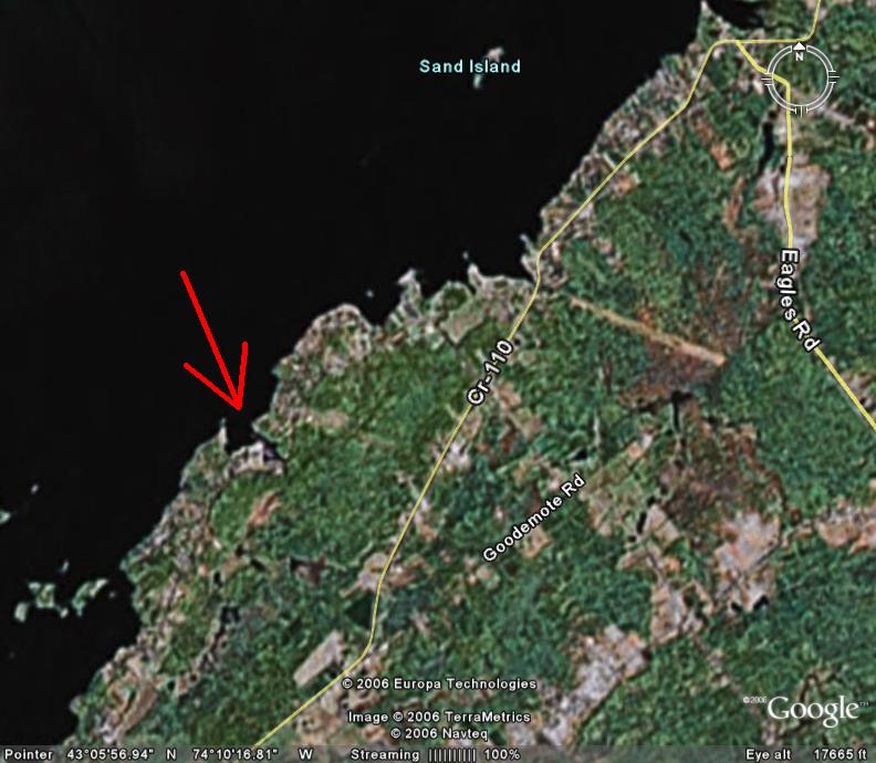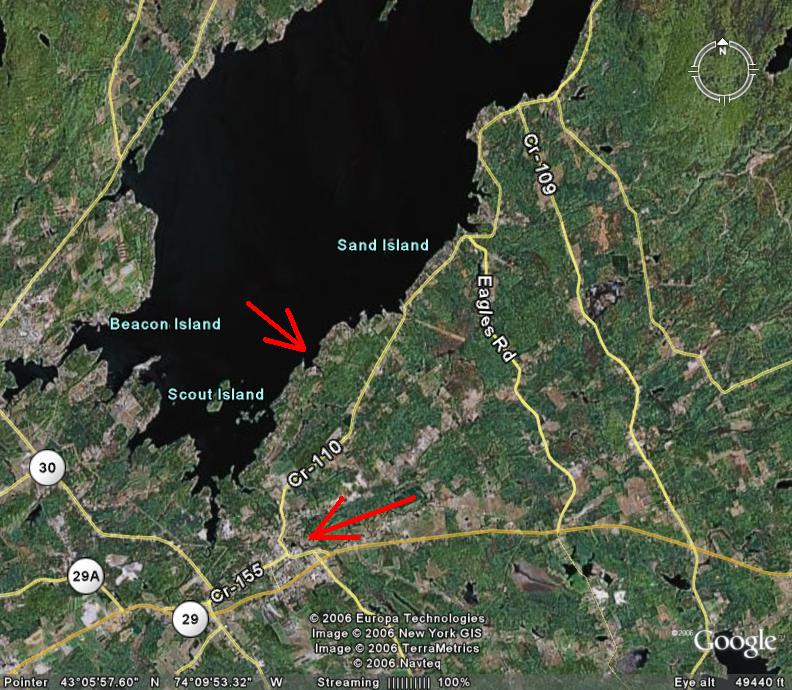 If you just stay on CR 110, it takes you through town and on north to the lake. A few miles north of town there's a sign for a DEC launch. Just follow the sign. The top arrow points to the launch. The bottom arrow points to Broad Albin