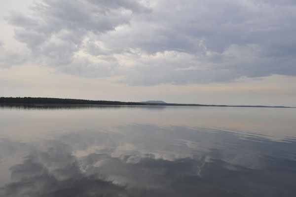 The lake was mirror calm