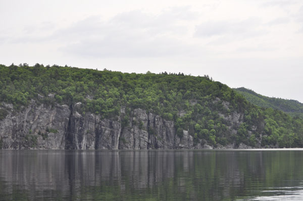Looking northward along the west side of the lake are the Palisades