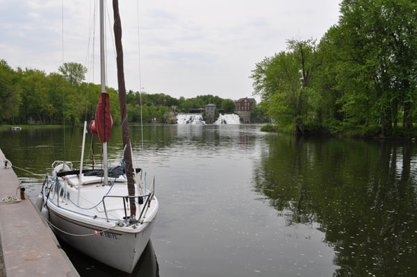 Beyond Partridge, I had it in the back of my mind that I'd like to take a look at Otter Creek and the town of Vergeenes. The creek enters the lake a couple of miles north of Partridge and is navigable for 7 miles ending at the water falls in Vergennes. The town has two docks with running water and electrical hookups for weary travelers. One of the docks is on the site of a historic ship yard employed by the Americans to build a fleet to fight the British during the war of 1812. The falls were harnessed to power the shipbuilding efforts. The USS Saratoga was built there in a mere 40 days.
