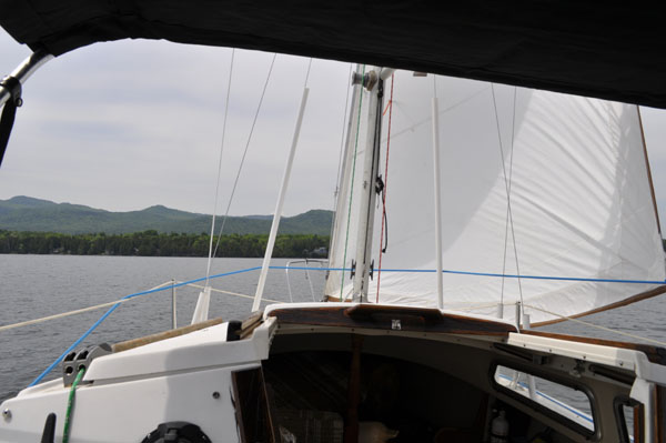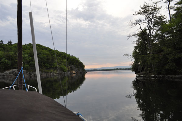 I left my slip in Port Henry at about noon on May 22nd. Managed to make a really good impression on onlookers when I had to return to the dock, not once but twice for stuff I'd forgotten in the car. LOL, the glories of aging. :-) Anyway, I headed into a north wind and 2 foot waves. I used the outboard in order to make headway and pushed past Cole Bay and Westport to Partrige Harbor. The wind and waves dropped off steadily along the way but I continued motoring to avoid hours of tacking.